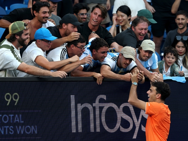 Cerundolo celebrated with fans after completing a straight-sets win over Rublev, propelling him into the fourth round at Melbourne Park for the first time. It's a stage he's reached two times previously at Roland Garros.